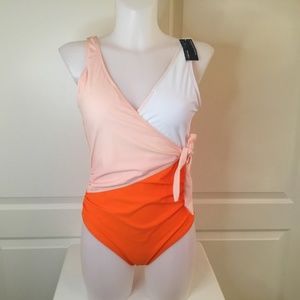 Brand new Summer Mae women’s size M size chart above) coloured blocked one piece bathing suit. Wide straps with V neck and removable padded bra. Modest brief bottom. Attached side waist belt tie.
