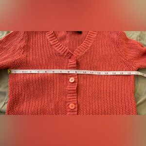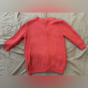 Stay cozy and stylish with this vibrant coral sweater. Perfect for any occasion. Full button down cute 3/4 sleeve size medium stretchy fit