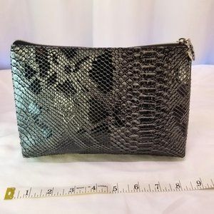 Women's Cosmetics Makeup Bag Faux Snakeskin Pattern Black & Gray