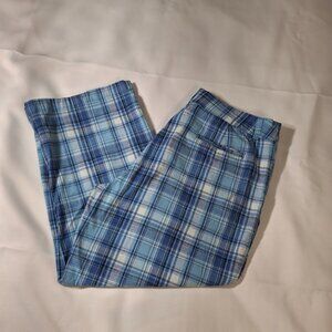 Womens Cotton Crop Pants Size 12 Stretch Blue Plaid Cherokee Summer Pool Golf