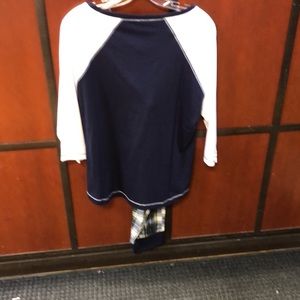 Navy blue shirt with white sleeves