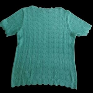 Women's Cotton Mint Green Blouse Knit Vintage Top, , Openwork, Size L