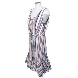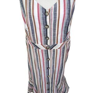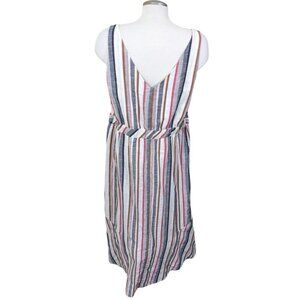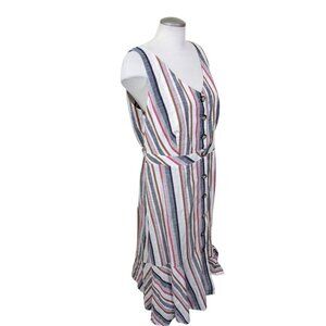 Womens Cotton Shift Midi Dress Plus 1X Button Front Striped Tank Sleeveless