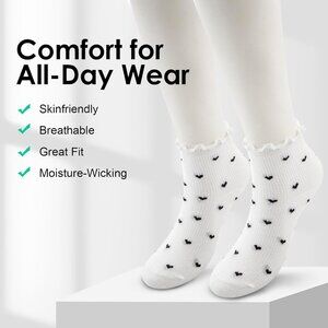 No-Slip Fit & All-Day Comfort: The ruffle socks women designed with elasticated arch support and reinforced heel/toe for great fit during commutes. Calf height (approx. 3.6") prevents sliding while moisture-wicking cotton keeps feet fresh through workdays or weekend adventures.