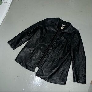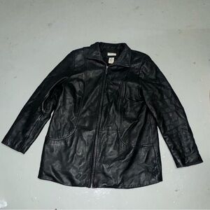 Women’s Covington Brand Vintage Black Real Leather Zip Up Jacket Size L 14-16. Vintage 90s leather jacket in great condition no issues or flaws. Collared detail with pockets. Made in Canada on the tag. Real leather outside and polyester lining on the inside. Measurements included in photos.