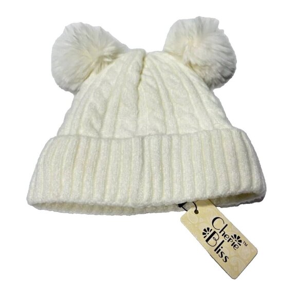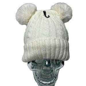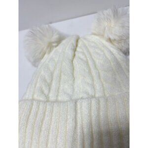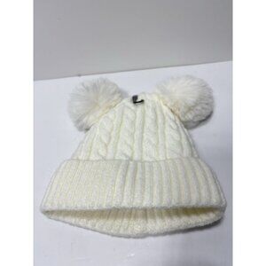 Women's Cozy Winter Hat with Double Pom Poms, Cream White, Soft Cozy Lining -New