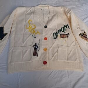 Womens Cream Cardigan M/L Cable Knit Sweater Patches Grandma Core Gossip Girl