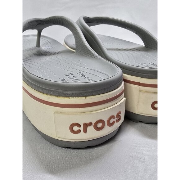 Womens Crocs Crocband Platform Gray Comfort Flip Flops Thong Sandals Size 6