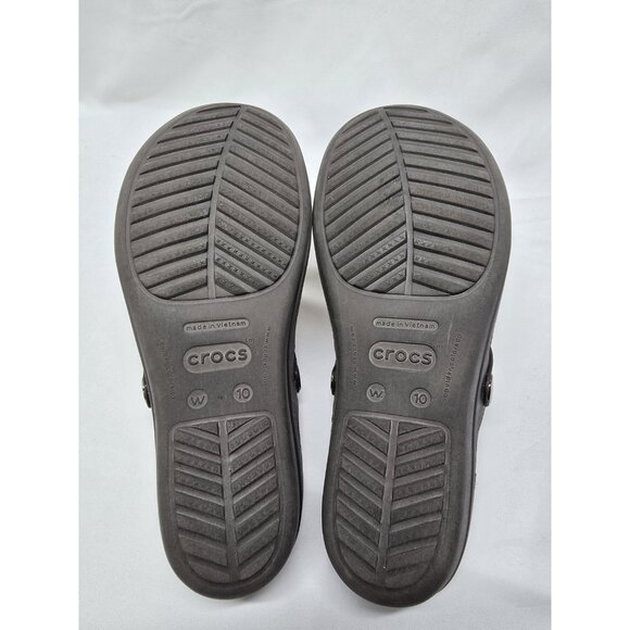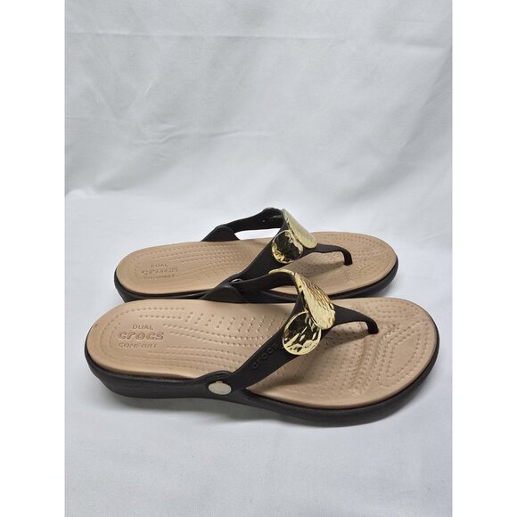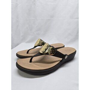 Women’s Crocs Sanrah Hammered Embellished Wedge Sandals Gold Medallion Size 10