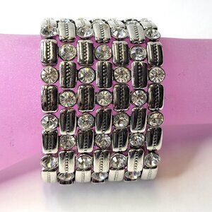 Women's Crystal Silver Tone Wide Stretch Cuff Bracelet