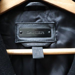 Like new! This peacoat had black leather on both sleeves and down the zipper line. Great Quality.