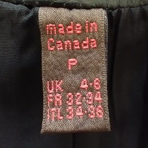 Women's Danier black leather jacket. Size S (shows a UK 4-6 size on the tag included in pics). Great quality - Italian leather, made in Canada. Excellent condition, I've owned the jacket for years but had only worn it a handful of times. Only signs of slight wear are on the bottom right pocket and you'd have to look very close up to see any difference between that side and the left - see last 2 zoomed in pics for the comparison. No other signs of wear on the exterior, all buttons original. Measurements: armpit to sleeve length = 17.5", straight down side from armpit to hem length = 18", length top of shoulder to hem = 27", length neck opening to hem = 23". Across waist flat measurement = 14.5", across chest right under armpit flat measurement = 16.5", across bottom of hem flat measurement = 16.25".