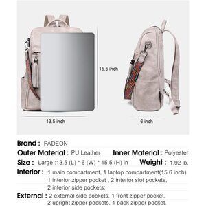 * Structure: This leather laptop backpack purse for women adopts a zipper with a large vertical opening at the top, which is very convenient for loading items. There are muti-pockets inside the PU leather backpack, which is convenient for storing your items. This laptop backpack has 13 pockets: 1 main compartment and contains a 15.6 in laptop compartment, 5 zipper pockets, 2 slot pockets and 4 side pockets. So this is a spacious and stylish computer backpack for women.