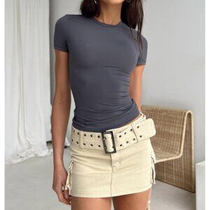 🆕Women's Deep Grey Nylon Crop Tops Short Sleeve Round Neck Workout Slim Fit