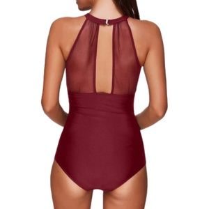 Women’s Deep Plunge See Through Mesh One Piece Bathing suit