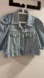 Elevate your style with this chic women's denim jacket, featuring elegant pearl embellishments. Perfect for adding sophistication to any outfit. Half sleeves, puff shoulders.