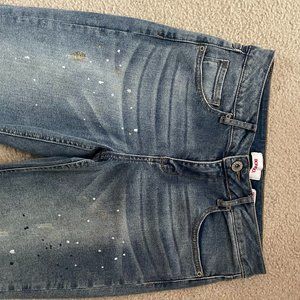 Size 6, Bongo's skinny jeans. Small threaded patterns with blur, white and mustard acrylic dots. Good condition.