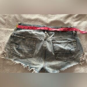 Stylish denim shorts with lace trim, perfect for casual outings. Features a classic blue color with intricate lace detailing. Ideal for a chic and comfortable look. Stretch style