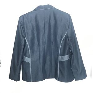 Women’s Denim Look Button Front Blazer Jacket – Contrast Stitching
