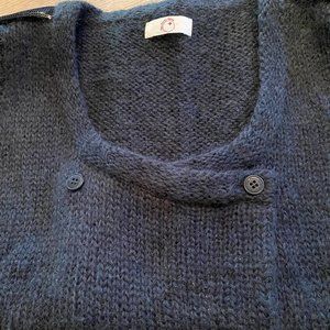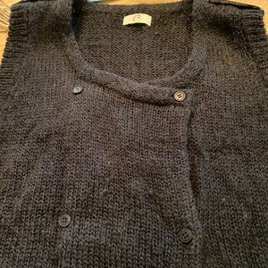 Women's Des Petits Hauts dark teal sweater vest. 60% kid mohair, 40% nylon. Des Petits Hauts is designed in France. Cute black sequin detail on both shoulders. Looks great with a pair of boyfriend jeans and a long sleeve t-shirt.