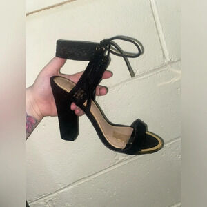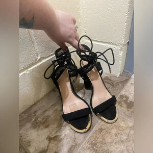 Womens black Disney call it spring Alice through the looking glass womens heels. Lace up detail around ankle. Slight wear but still in good condition. Size 6. Perfect for prom