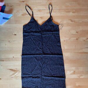 Element Roberta Dress Drapey rayon woven with all over print V neck slip dress Adjustable spaghetti shoulder straps Side slits 100% viscose Black leopard all over print NWT