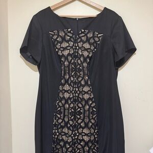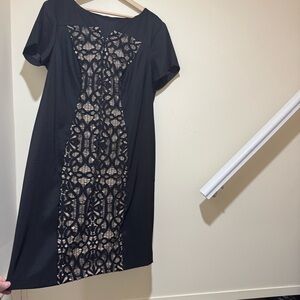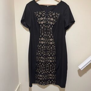 Women’s DressBarn Formal Black Nude Detail Lace Tight Short Sleeve Dress Size 16