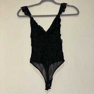 Women’s Dynamite Brand Black Lace Party Tong Style Tank Top Bodysuit Size: XS