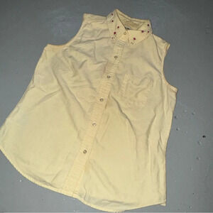 Women’s Eddie Bauer Brand Yellow Button Down Tank with Floral Embroidery Size XS