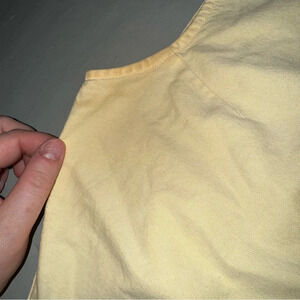 Women’s Eddie Bauer Brand Yellow Button Down Tank with Floral Embroidery Size XS. Very summer grandma core vibes. Cottagecore vibes too. Darker under the armpits as seen in photos but in otherwise good condition. Super cute floral embroidered on the collar. 100% cotton material. Measurements included in photos.