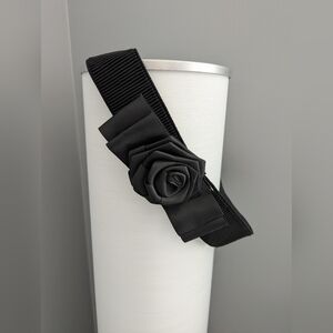 Women's Elasticized Black Belt With Flower/Rosette Bow Detail