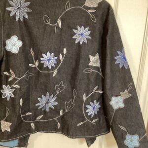 Women's Embroidered Beaded Black Jacket Front Zip Fully lined Western Cowgirl