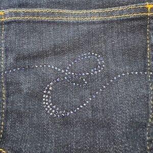 Also have decorative crystal logo beading on back pockets - very subtle.