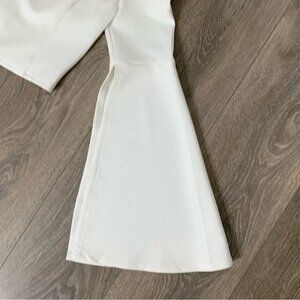 Elevate your wardrobe with this stunning Essue off shoulder blouse in a chic off white color. This top features a flattering cropped length and wide flare sleeves with a split detail for a touch of elegance. The off shoulder design adds a trendy and stylish touch, perfect for any fashion-forward woman. Made with high-quality materials, this blouse is not only fashionable but comfortable to wear all day long. Pair it with high-waisted jeans or a skirt for a versatile and sophisticated look. This size S blouse from Essue is in used condition but still in great shape, ready to be a staple piece in your closet. Add this unique and eye-catching top to your collection today!