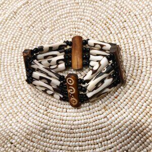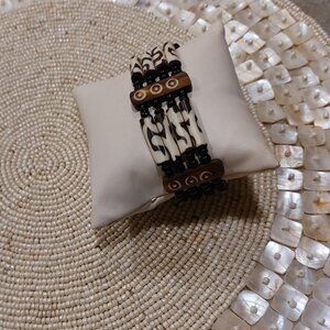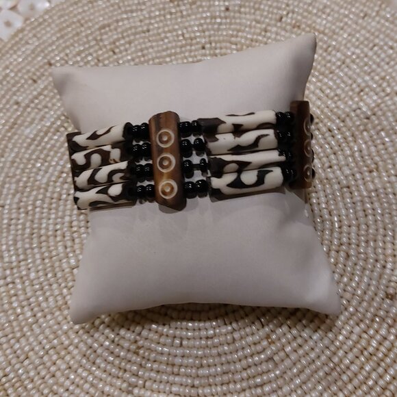 Women's Ethnic 4-Rows Batik Bone Wood Stretch Bracelet - NWOT