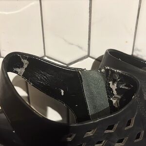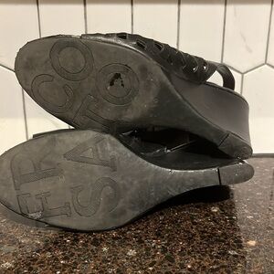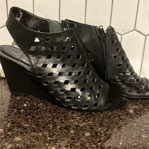 Womens FRANCO SARTO Black Leather Open Toe Wedge w/ Cut Out Accent Sz 6
