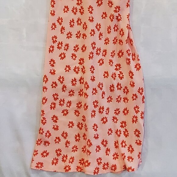 Women's Fairy Midi Maxi Dress Front Twist Pink + Red Daisies strappy back
