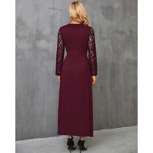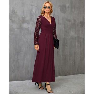 ⚡Women’s Fall Maxi Dress 2025 Lace Long Sleeve V Neck Wrap Dress with Pockets