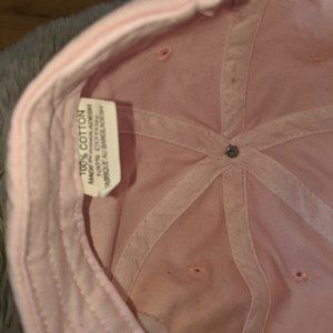 Light pink "joy is in the journey" fashion ball style hat, adjustable with pony hole.