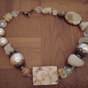 Womens Faux Pearl Beaded Necklace Adjustable 14-16"
