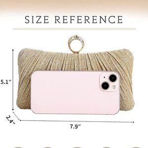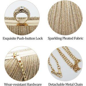 Glitter Ruched Style : This gold purses is made from sparkling pleated fabric, soft polyester lining and rhinestones buckle; It gives off a glamorous glow and makes it more fashionable and elegant.