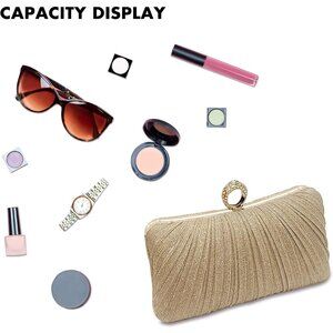 Size & Capacity : Size:7.9*2.4*5.10inches; Weight:0.88lb; The gold purses for women is large enough to hold your mobile phone, ID card, cash, credit card, air cushion, loose powder, lipstick, car keys, mini mirror, tissues and other party carry-on items.