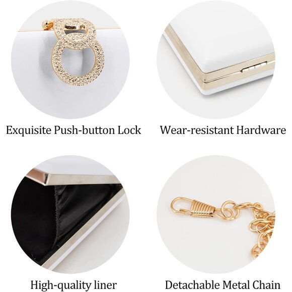 【Unique Design】With a push-lock design and removable chain, the prom clutch can be used as a evening bag,clutch bag,shoulder bag or crossbody bag,you can choose for free according to the occasion.