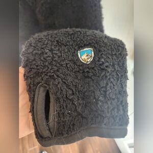 Women's Fleece Kuhl Jacket. Size Medium. Hidden hood and thumb holes. Used with only minor signs of wear, overall in very good condition.