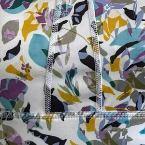 Multi coloured print on white background