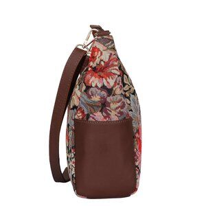 Women's Floral Tapestry Fabric Hobo Bag | Leather-Trimmed Crossbody Bag