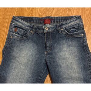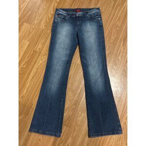 Womens Foxy Jeans Medium Wash Bootcut Jeans Back Pocket Stitch Detailing Size 9