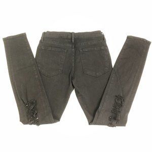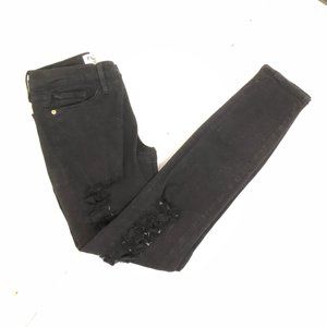 These black skinny jeans are intentionally distressed with a mid rise and skinny leg. These jeans have a soft fabric with stretch so you can wear them comfortably all day long.