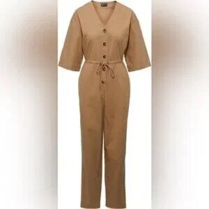 Women's Frank and Oak The Kapok Jumpsuit Cotton Blend Short Sleeve V-Neck Size M