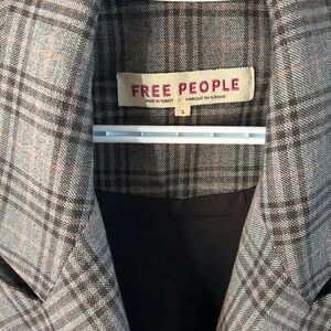 Women's Free People Plaid Blazer Grey, Brown & Peach